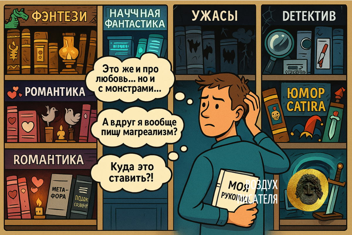 Жанровые гибриды — это нормально. Многие успешные книги сочетают элементы разных жанров. Главное — понимать, какой жанр основной.