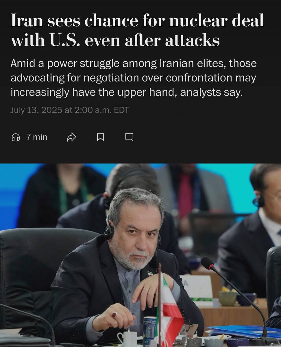 Белый дом считает, что Иран открыт для соглашения по ядерной программе, — Washington Post. «Чиновники в администрации Трампа верят, что Иран открыт для дипломатического соглашения по своей ядерной программе даже после ударов США и Израиля, поставивших точку в текущих переговорах», — пишет газета со ссылкой на американского чиновника. Заря | Новости - Подписаться