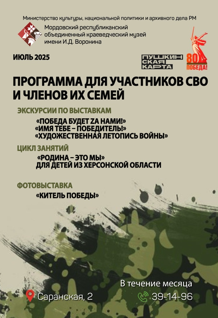 13 июля. /MEDIA TALK/. (16+) Мордовский республиканский объединенный краеведческий музей имени И. Д. Воронина разработал и запустил специальную познавательно-патриотическую программу, адресованную участникам СВО и членам их семей.