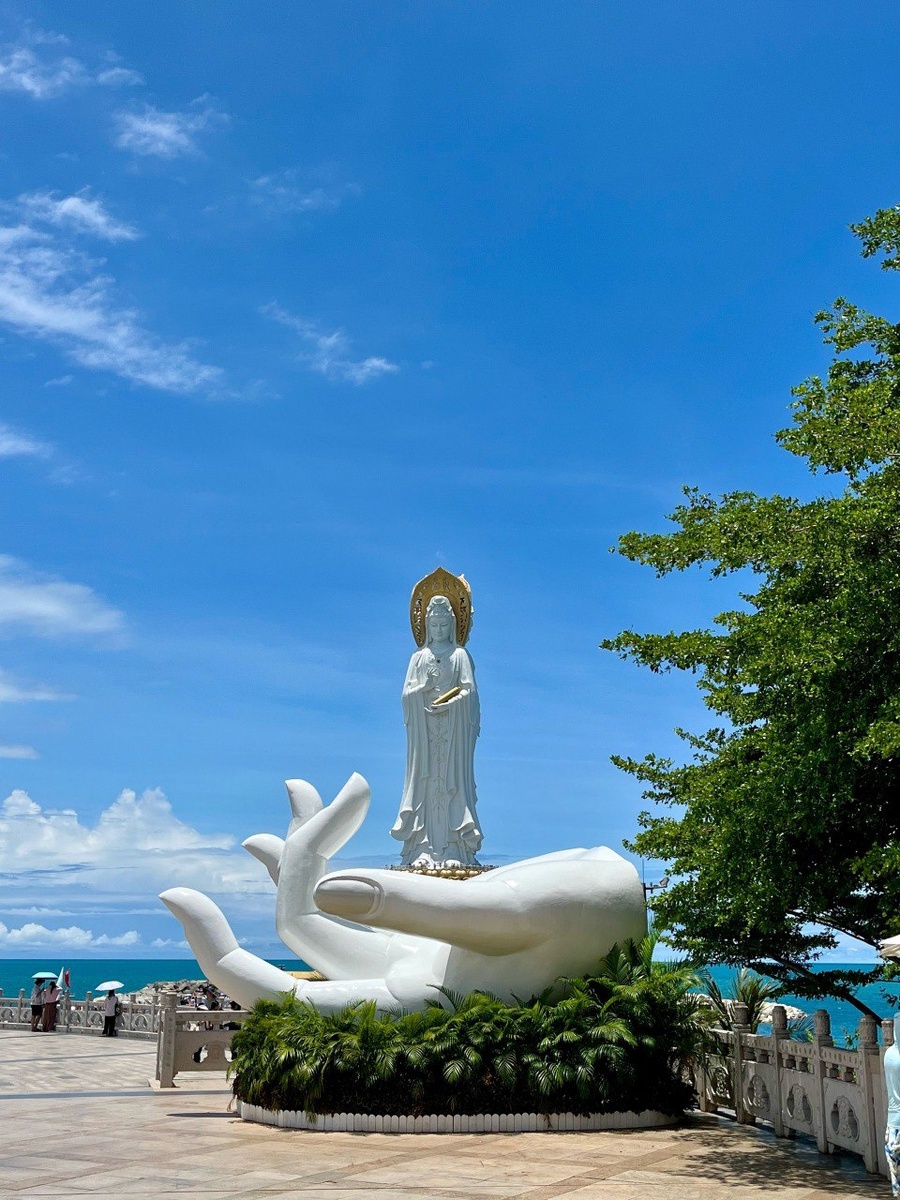 Одна из самых впечатляющих локаций Хайнаня — в неё точно стоит выбраться всем 🔥 Речь, конечно, о статуе богини милосердия Гуаньинь в буддийском центре Няньшань (Санья). Комплекс построен в 1988 году и принадлежит к числу крупнейших буддийских храмов Восточной Азии. Рукотворные пруды и китайские беседки, тропические сады, величественные храмы... А прямо на берегу моря — статуя высотой 108 метров. Можно подняться на обзорную площадку прямо у подножия богини и посмотреть на побережье с высоты — вид захватывающий 📸 Территория — очень большая и красивая. Множество зон для прогулок и отдыха, есть несколько кафе. Можно провести в Няньшане полдня или даже весь день. 🚍 Как добраться? Вариант №1 — самостоятельно: • От Саньи — около 40 минут на прямом автобусе • От Дадунхая — примерно 1,5 часа Очень удобно: автобусы ходят регулярно, довозят прямо к входной группе. Самостоятельная поездка хороша тем, что вы гуляете в своём ритме, без спешки и толпы людей вокруг. Мы выбрали этот вариант