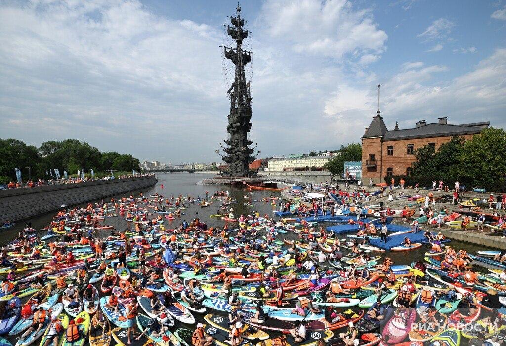 В Москве устроили костюмированный заплыв на сап-бордах в честь Дня Московского транспорта