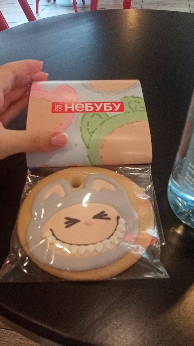 Сеть кафе-пекарен Цех85 выпустила печенье «Небубу» в честь популярных игрушек. Всего есть 4 цвета: синий, серый, фиолетовый и зелёный. Причём цвет печенья невозможно узнать заранее — десерт продаётся в закрытой упаковке. Кажется, лабубу с нами навечно