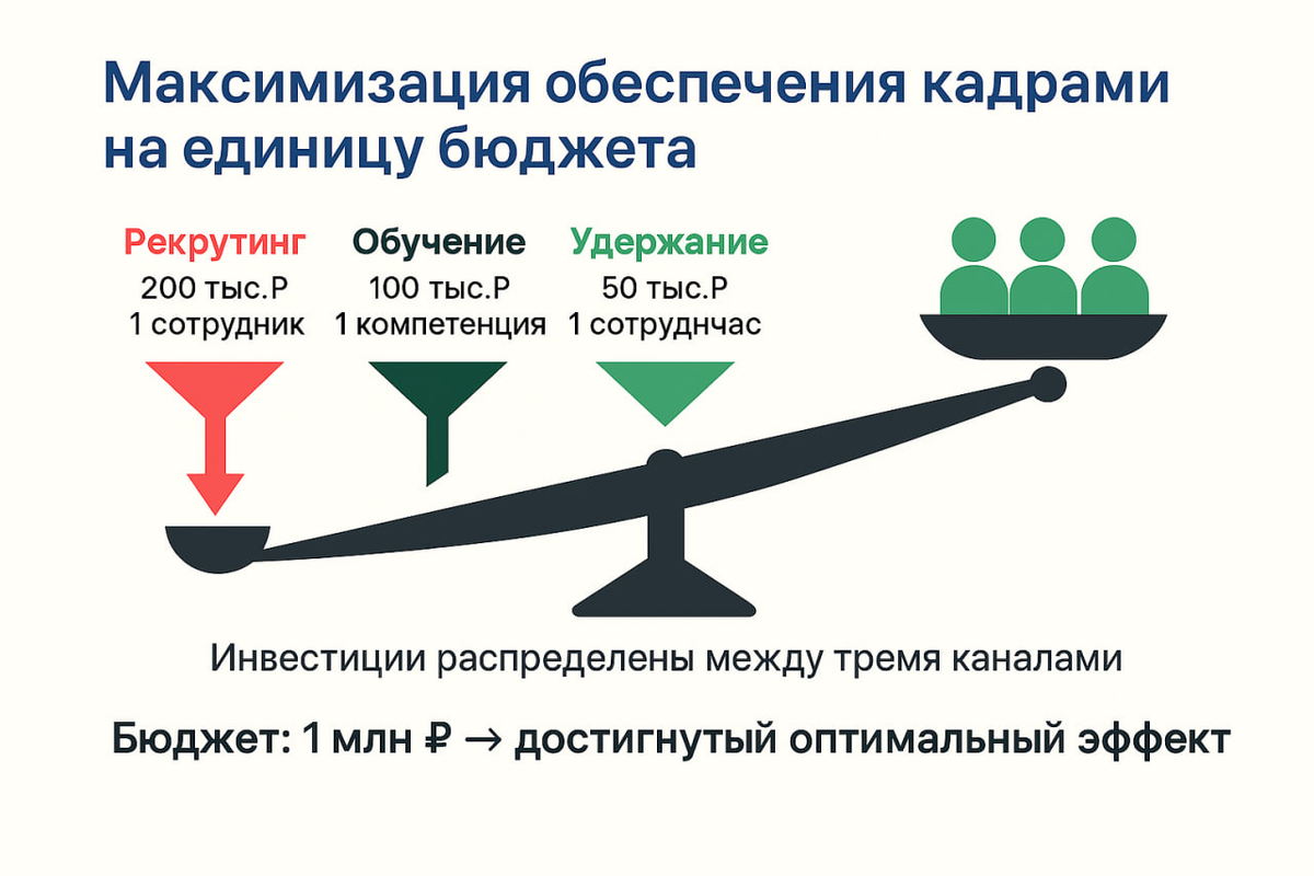 ПРИГЛАШАЮ ОТСЛЕЖИВАТЬ НАС В ТЕЛЕГРАМ Помните, в канале HR-аналитики мы проводили опрос HR-приоритеты 2025 На первом месте удержание, потом адаптация и т.п. Так вот. В идеале веса этих приоритетов должен считать HR-аналитик. Это и есть стратегическая задача HR-аналитики. ✅У нас есть (упрощаю) три ресурса обеспечения компании навыками / компетенциями: 1️⃣Рекрутинг 2️⃣Обучение 3️⃣Удержание Каждый ресурс дает нам людей / компетенции. Мы можем вывести эквиваленты и сравнить их. Грубо говоря, удержали 6 человек, это эквивалентно найму 4, 5 новичков. Обучили 3 джунов, это эквивалентно найму 2 мидлов. И т.д. В идеале мы можем измерить эффективность каждого ресурса и понять ограничения рынка. ✅Эффективность – это отдача от канала на вложенный рубль. Т.е. мы вложили в удержание 100 рублей, удержали 60 человек, что эквивалентно найму 45 новичков, но за те же деньги мы могли бы нанять 55 новичков, поэтому выгоднее вложить в найм. Или в обучение, которое дало бы такой эффект... ✅Ограничен