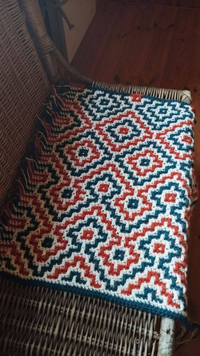 Многоцветная мозаика. Новости наших чатов Юлия экспериментирует с многоцветной мозаикой в чате «303 петли». Чат так называется, потому что у меня в работе плед «Сашико», в котором я добавляю третий цвет, чтобы визуально выделить фигуры. Если хотите попробовать себя в многоцветной мозаике — приходите в «303 петли». Юлия, спасибо вам за азарт! Проект «303 петли: чат и схема https://t.me/pled_gendina