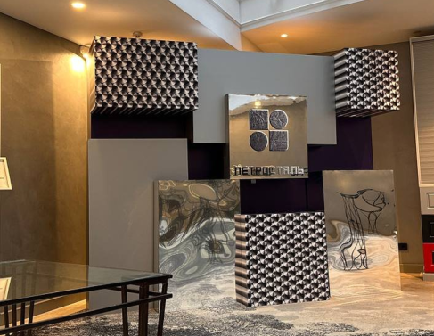 Когда к нам обратилась крупная металлургическая компания с запросом на фотозону для корпоратива, мы подумали: будет что-то строгое, серое и тяжёлое. Ну вы понимаете — трубы, листы, металл, заводские вибрации. Но… мы решили сделать иначе. Компания «Промсталь» — это поставщик металлопроката. Их сотрудники каждый день работают с металлом. Мы захотели сделать фотозону, которая покажет этот материал не просто как «железяку», а как часть эстетики. Как стиль. Совместно с дизайнером и заказчиком мы утвердили концепцию: Это была не просто «фотозона», а композиция. Почти как инсталляция в музее современного искусства, только на корпоративе. Секрет успеха — в продуманной конструкции. Кубы мы сделали из 10-миллиметровых сэндвич-панелей. Лёгкие, прочные, идеально фрезерованные на станке с ЧПУ. Склеили, оклеили, довели до блеска. Основа — деревянный брус. Он устойчивый и лёгкий, легко собирается. Конструкция рассчитана так, чтобы влезла в обычную машину, собиралась за пару часов, и так же быстро де