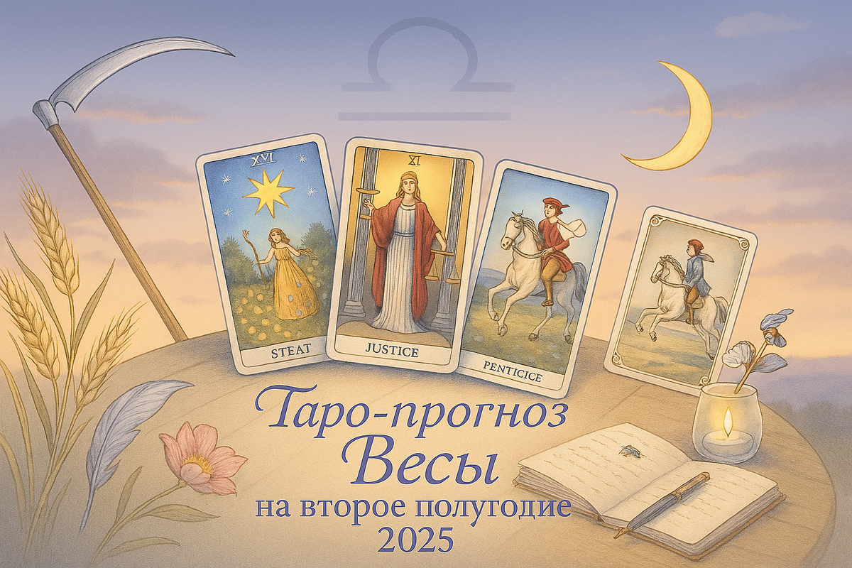 На карте — строгая фигура с весами, измеряющая поступки. Это карта ответственности, зрелости, баланса и кармы. Выход из полугодия проходит под знаком подведения итогов и справедливых решений.