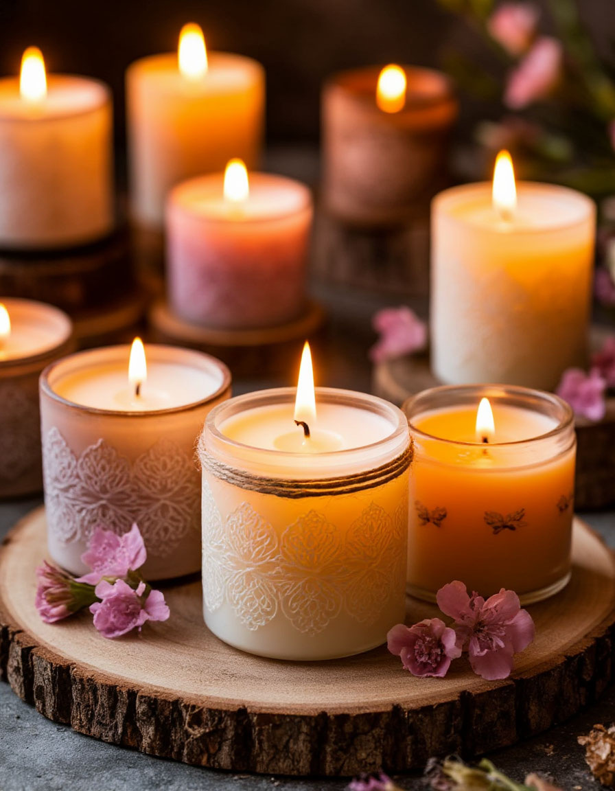 - Сфокусируйтесь на уникальном дизайне или тематике (например, свечи в виде цветов, с вкраплениями сухоцветов).