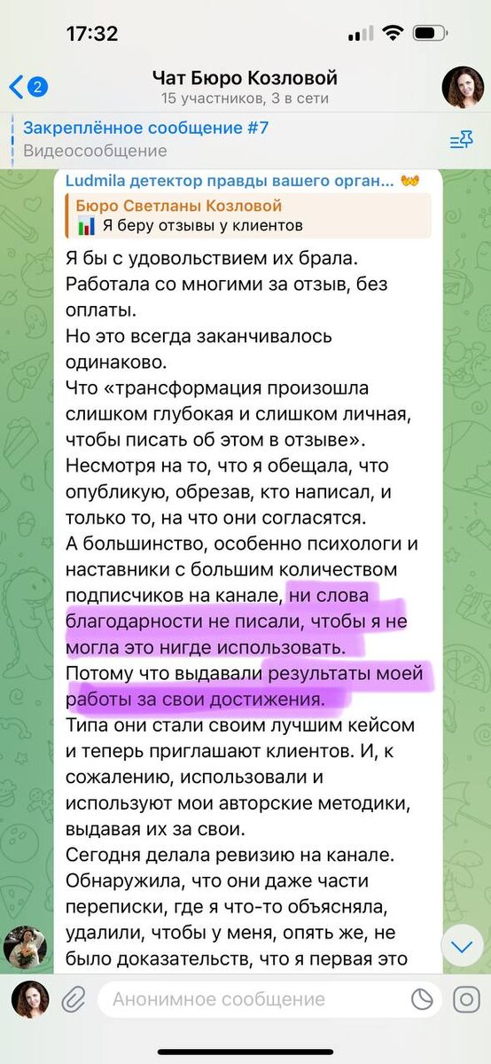Ну а почему они должны были писать? Если глубокая трансформация, то хорошо, что не написали ибо то, что они исцелили могло быть не одобряемо социально. А то, что написали результаты себе, то это так и должно быть. * Я не сел в тюрьму * Я сэкономил на штрафах * Я спокойно сплю 😴 * Я не беспокоюсь о новых изменениях Вот так говорят мои клиенты и они правы! Потому что именно для этого я и работаю. И я на жду, что они ажур скажут: это все Светлана сделала (хотя все равно говорят) Возможно, что смысл ваших сессий/консультаций как раз в том, чтобы человек 🧍♂️ вышел от вас счастливым и сказал наконец-то: Я -красавчик / Я - красотка.