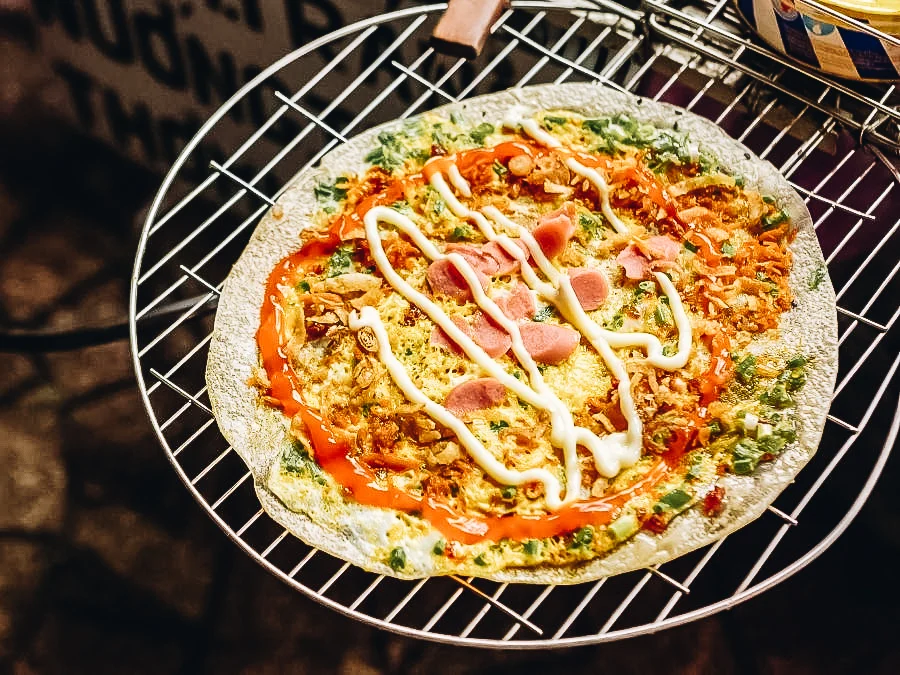 Хотя эту популярную закуску часто называют вьетнамской пиццей, она может сильно отличаться от других видов пиццы, к которым вы привыкли. Бань транг относится к рисовой бумаге, а бань транг нуонг в самом простом варианте - это рисовая бумага, посыпанная яйцом и зеленым луком и поджаренная до хрустящей корочки на углях. После приготовления его можно посыпать любыми ингредиентами, например измельченной курицей или говядиной. Это блюда из Вьетнама, которые особенно любят местные жители. Как правило, это блюдо скорее пикантное, чем сладкое, готовится в кляре из обжаренной рисовой муки с начинкой из ростков фасоли, зеленого лука, свиной грудинки и креветок. В частности, в Хюэ готовят Бан хоай, хотя оно немного более хрустящее, чем бан cео. Интересно, что, хотя он и называется "манговый пирог", на самом деле в нем нет манго! Вместо этого этот рассыпчатый шарик, приготовленный из клейкого риса, посыпан арахисом и сахаром. Возможно, он получил свое название из-за своей формы, которая предположи