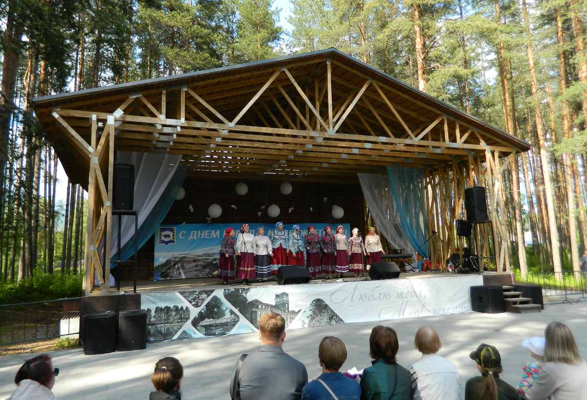 Видимо, этим летом я умудрился чем-то основательно прогневать небесные хляби, и после дождливого июньского квеста в Липецкую область, столь же "прелестная" погода накрепко уцепилась за меня и отправилась за компанию в северные земли, где и решила задержаться вплоть до моего отъезда оттуда. Таким образом, лесом пошла большая часть моих около-туристических планов, а карельские белые ночи зачастую пришлось коротать в четырех стенах, под шум неугомонного зловредного ливня. Впрочем, иногда с погодой все же везло, позволяя совершить очередную короткую вылазку куда-нибудь по окрестностям. Так, в один из редких моментов погожих дней, получилось заглянуть на празднование Дня города в Медвежьегорске. Дата в этом году оказалась не круглой (городу исполнилось 87 лет - почтенный, но не юбилейный возраст), а потому и масштаб гуляний проходил относительно скромно, особенно в сравнении с размахом празднования в столице республики Петрозаводске, состоявшегося в этот же день. Традиционные и неизменные