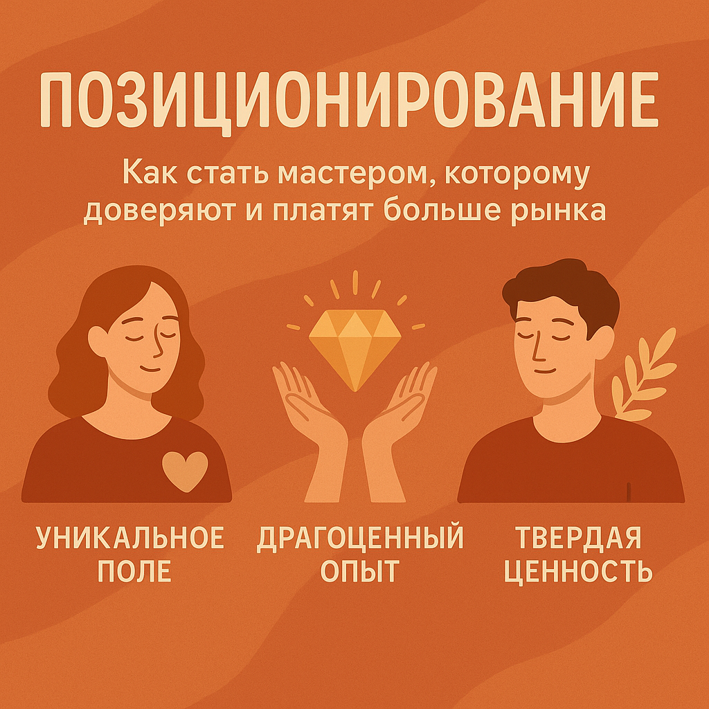 Настоящее позиционирование мастера — это не маркетинговый трюк, а честное проявление твоего внутреннего поля. Позиционирование — это то, что о тебе думают и чувствуют, когда слышат твоё имя.