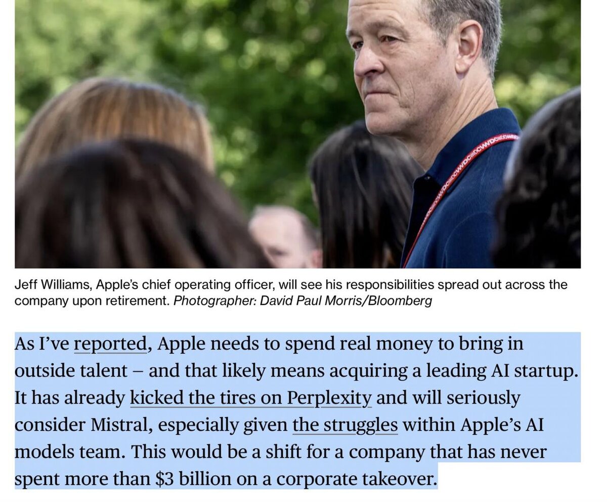 🍏 Apple всерьёз задумалась о покупке Mistral — Bloomberg / Марк Гурман