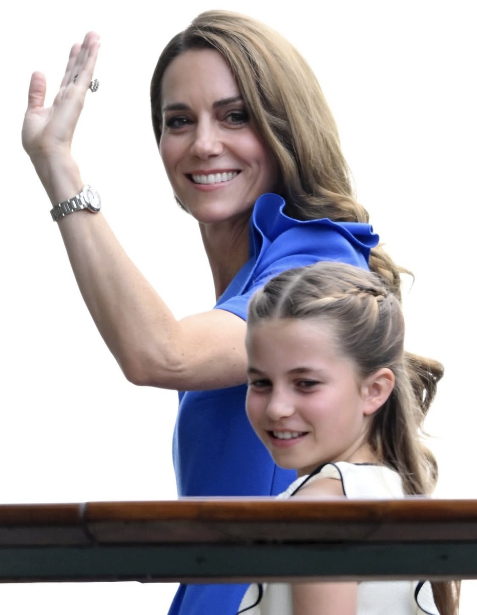 Ну и муж был. Лишь озорника Луи оставили с няней. Для финала в мужском одиночном соревновании, Кэтрин взяла с собой принца Джорджа и принцессу Шарлотту. Это стало неожиданным вторым появлением принцессы Уэльской на Уимблдоне в этом году, так как накануне она присутствовала на женском финале.А вот сегодня ее не ждали. Но здоровье позволило и она решила приехать, потому что является покровителем Всеанглийского клуба и по традиции должна вручить награды после матча. На ней красивое платье в стиле tea dress в цвете королевский синий, а также новое золотое ожерелье. Кроме платья, которое я лишь предполагаю, что это Safyia, Кэтрин носила туфельки от Ральфа Лорена шляпку от LK Bennett Cartier- часы и серьги и ожерелье от Daniella Draper. Очень красиво и по-девичьи мило одета и причесана Шарлотта, которая скоро догонит брата по посту. Принц Джордж почти всегда копирует костюм отца, принца Уильяма, но не сегодня. Наследник короны непривычно выглядит в белых брюках и синем льняном жа