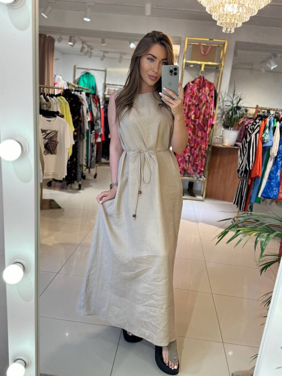 Платье из 100% льна в натуральном бежевом оттенке