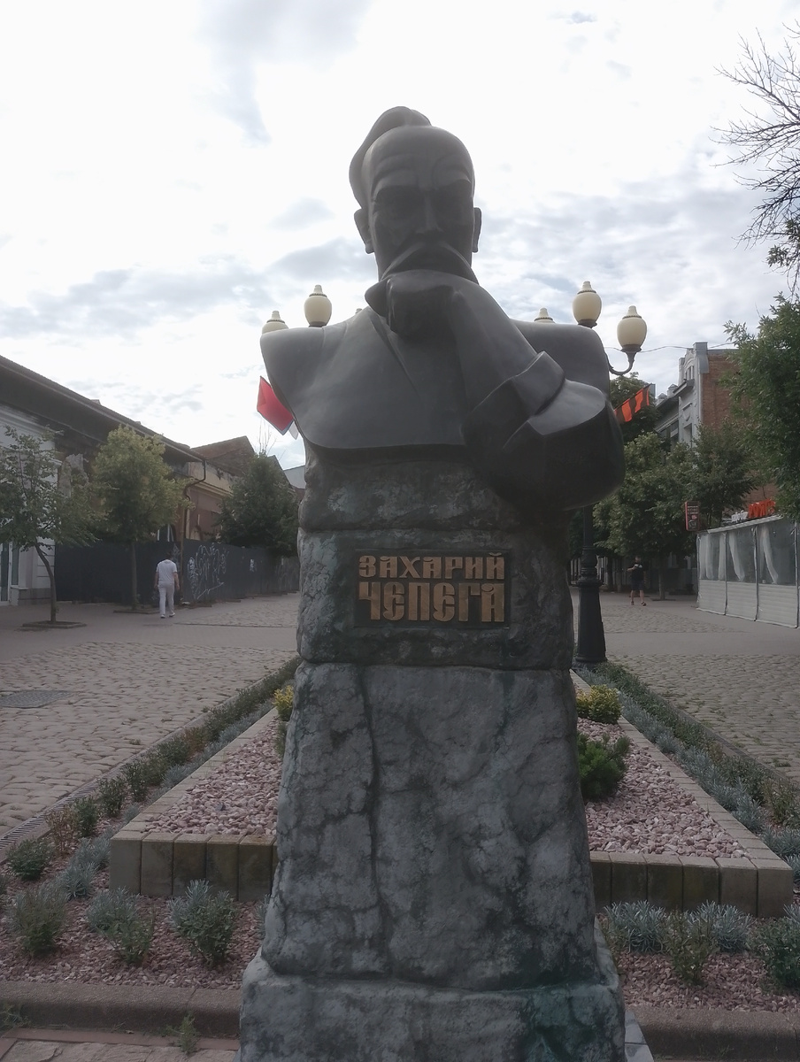 В самом центре города Ейска, на Ейском Арбате, на перекрестке улиц Свердлова и Ленина Вы увидите бронзовый бюст казака с характерным чубом и длинными усами, с хмурым и безжалостным взглядом, подпершим волевой подбородок своей сильной рукой. Это исторический известный персонаж-Захарий Чепега, казачий атаман, командовавший захватом здешних земель, и расселением казаков на Кубани после русско-турецкой войны! Под его "ногами" табличка с надписью " Город Чебаклей". Не все понимают-что это за табличка такая, причём тут город Чебаклей и почему чубатый атаман над ней нависает? Давайте вспомним историю города Ейска. Издавна этими местами владели крымские ханы и поселение на Ейской косе звалось Ханский городок. После русско-турецкой войны это место захватили казаки и назвали его городом Чебаклей (по названию рыбы). И лишь с 1848 года по указу генерал-губернатора князя Воронцова город был назван Ейск ( река Ея) Захарий Чепега- это бандит ещё тот... мальчишкой он прибился к казакам Запорожской