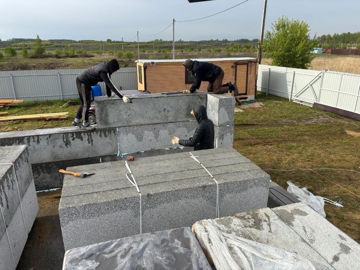 Монтаж одноэтажного дома из крупноформатных полистиролбетонных блоков в Тульской области