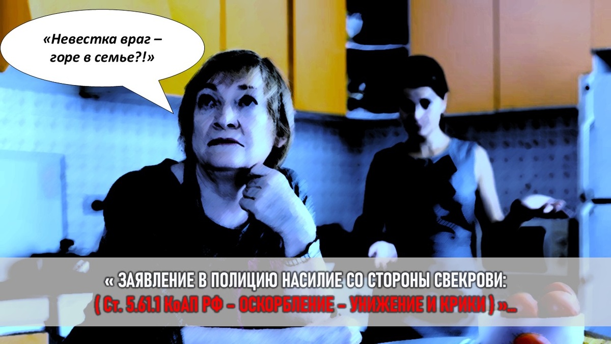 Самоуправство (ст. 19.1 КоАП РФ – если, например, выкидывает вещи/еду). - Вывод: Свекровь не имеет права терроризировать невестку на "ее территории". Квартира – собственность сына, а не поле битвы свекрови.