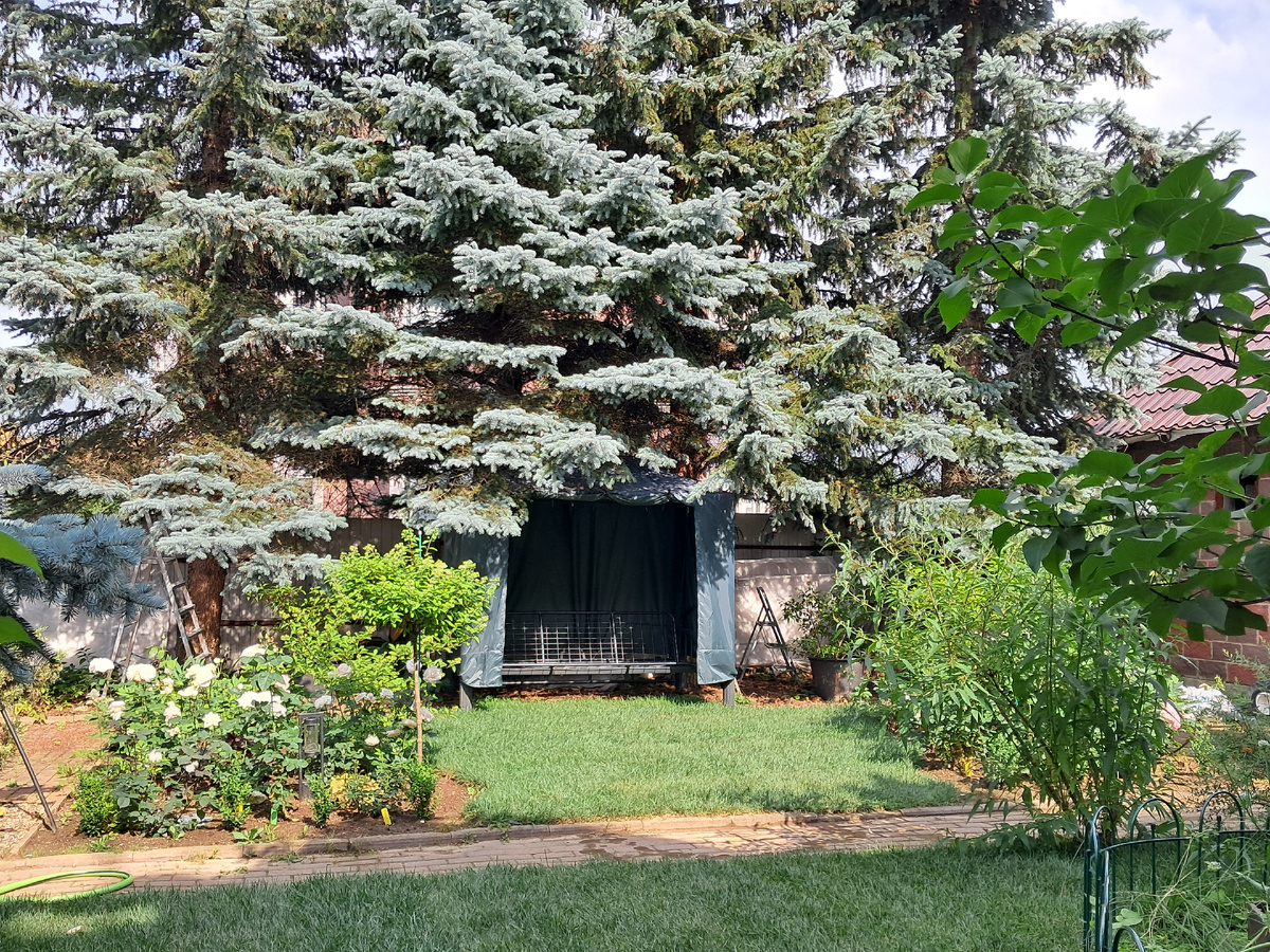 Это самый первый розарий, задуманный и созданный десять лет назад. Преобразования здесь продолжаются.