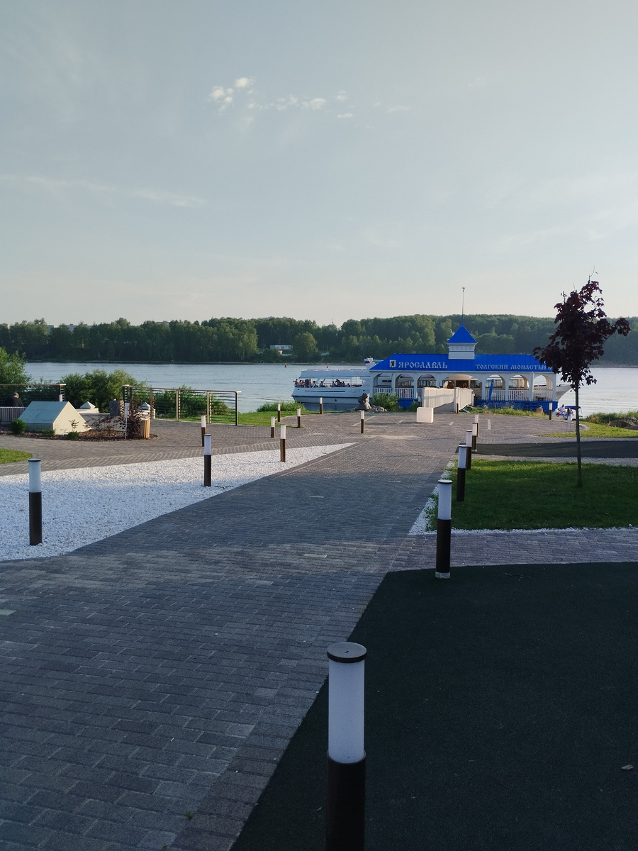 А днем я заметила, что в кирпичную дорожку вставлены полупрозрачные кирпичики и у входа на пирс есть большой белый полупрозрачный куб - как предупреждение в темное время суток