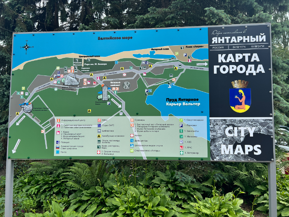 Янтарный — место, где Балтийское море показывает свою солнечную сторону. Здесь мягкий песок искрится в лучах света, волны несут прохладу, а в прибрежных дюнах скрывается ощущение уюта и простора одновременно. Это курорт, отмеченный «Голубым флагом», но главное сокровище — янтарь, который можно найти прямо под ногами. После сурового Балтийска мы оказались в совсем иной декорации: тёплый посёлок с тихими улочками, старинным парком и знаменитым пляжем с «Голубым флагом». Здесь нет ощущения спешки — только прогулки по светлому песку, поиски кусочков «балтийского золота» на берегу и неспешное знакомство с историей места, где сосредоточена главная часть российской добычи янтаря. В Янтарном в одном дне умещается всё: море, природа и следы богатой истории. Именно поэтому его стоит включить в маршрут по Калининградской области. Начали мы с "Янтарного Замка". Это музей, открытый в 2007 году в старинном каменном здании в центре поселка. Здание действительно напоминает небольшой замок и само по се