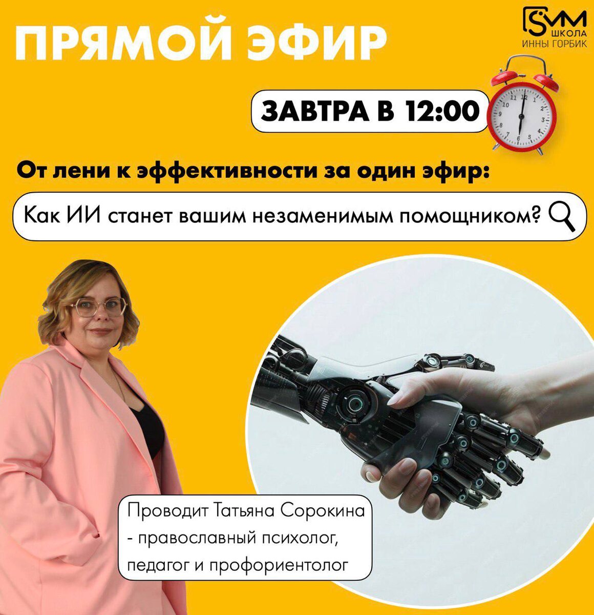 πΠΡ Π»Π΅Π½ΠΈ ΠΊ ΡΡΡΠ΅ΠΊΡΠΈΠ²Π½ΠΎΡΡΠΈ Π·Π° ΠΎΠ΄ΠΈΠ½ ΡΡΠΈΡ: ΠΠ°ΠΊ ΠΠ ΡΡΠ°Π½Π΅Ρ Π²Π°ΡΠΈΠΌ Π½Π΅Π·Π°ΠΌΠ΅Π½ΠΈΠΌΡΠΌ ΠΏΠΎΠΌΠΎΡΠ½ΠΈΠΊΠΎΠΌ? π£ΠΠ°Π²ΡΡΠ° Π² 12.00 ΠΏΠΎ ΠΠΎΡΠΊΠ²Π΅ Π½Π°ΡΠ° ΡΠΏΠ΅ΡΠΈΠ°Π»ΠΈΡΡ Π’Π°ΡΡΡΠ½Π° Π‘ΠΎΡΠΎΠΊΠΈΠ½Π°, ΠΏΡΠΈΡ