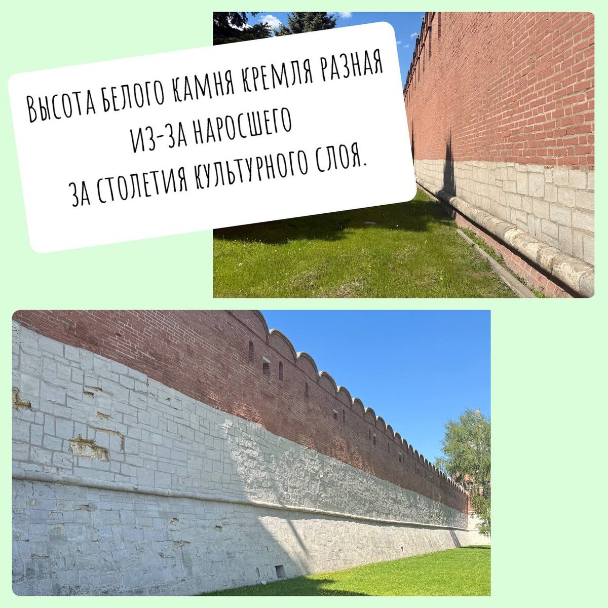 А высота стен стала ниже, всего-то 10700 метра. А все потому, что Кремль построили на болоте. Я б сказала утопает.
