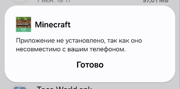 Ошибка "Приложение не совместимо с вашим устройством/телефоном" при установки Minecraft