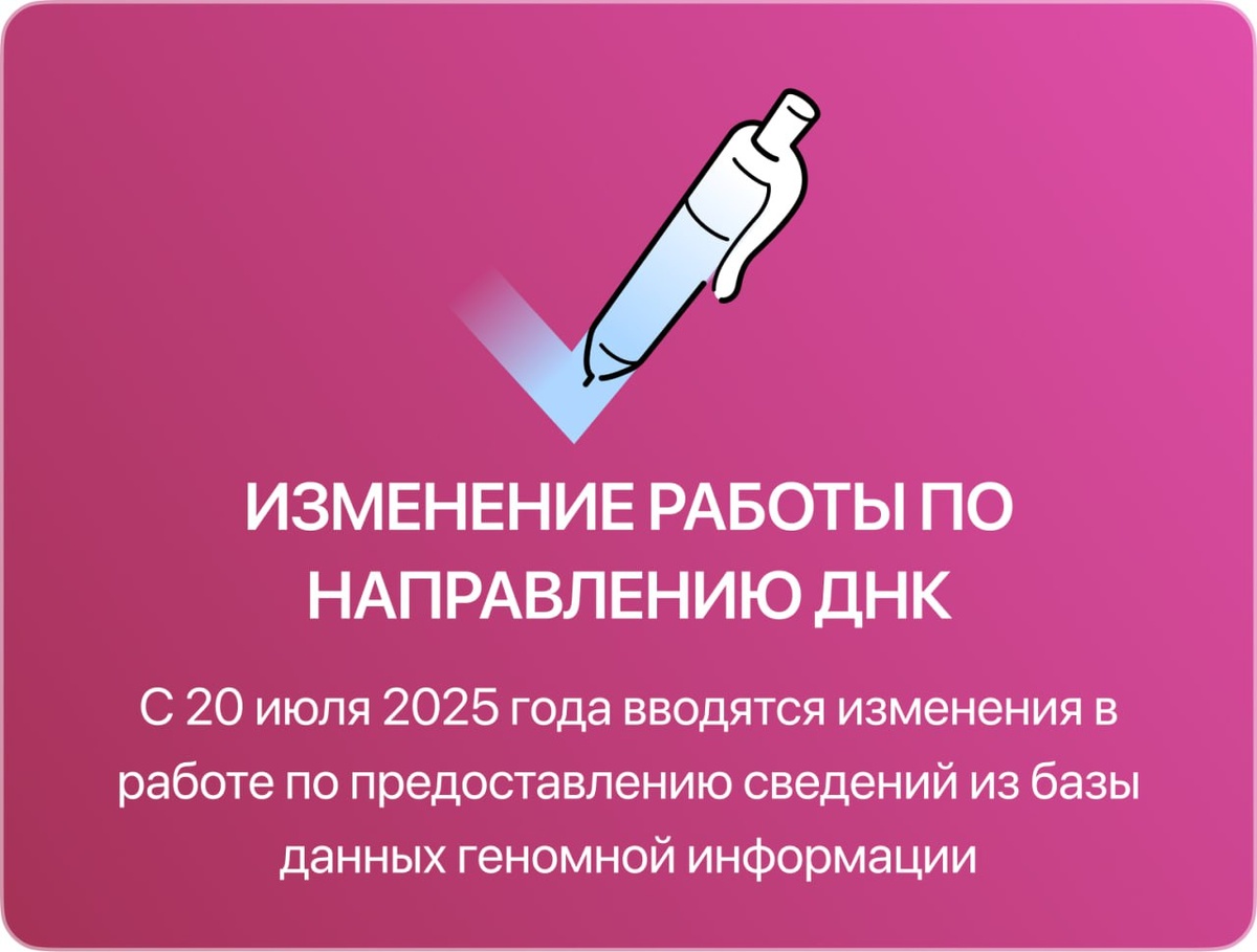 С 20 июля 2025 года вводятся изменения в работе по предоставлению сведений из базы данных геномной информации