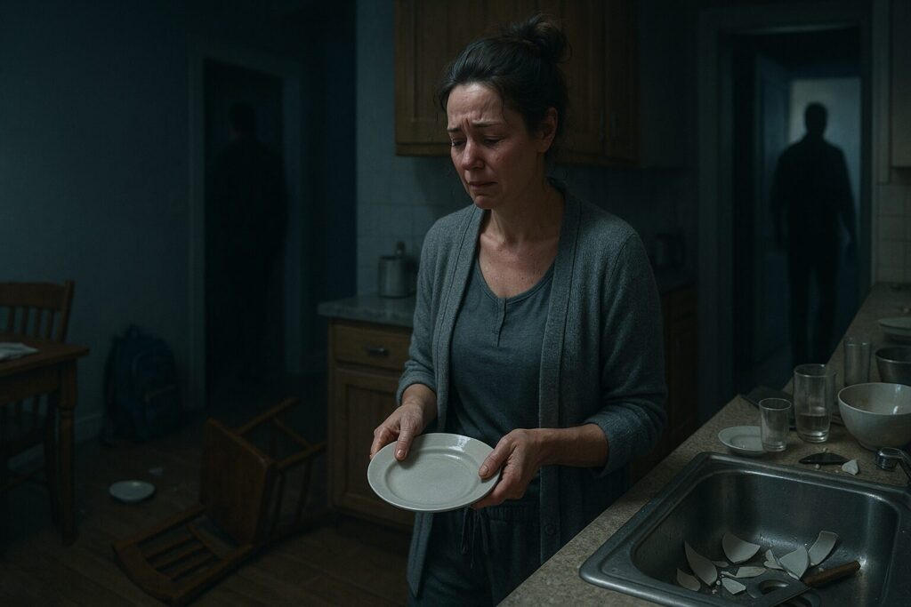 Сергей швырнул тарелку в мойку. Осколки брызнули в разные стороны.