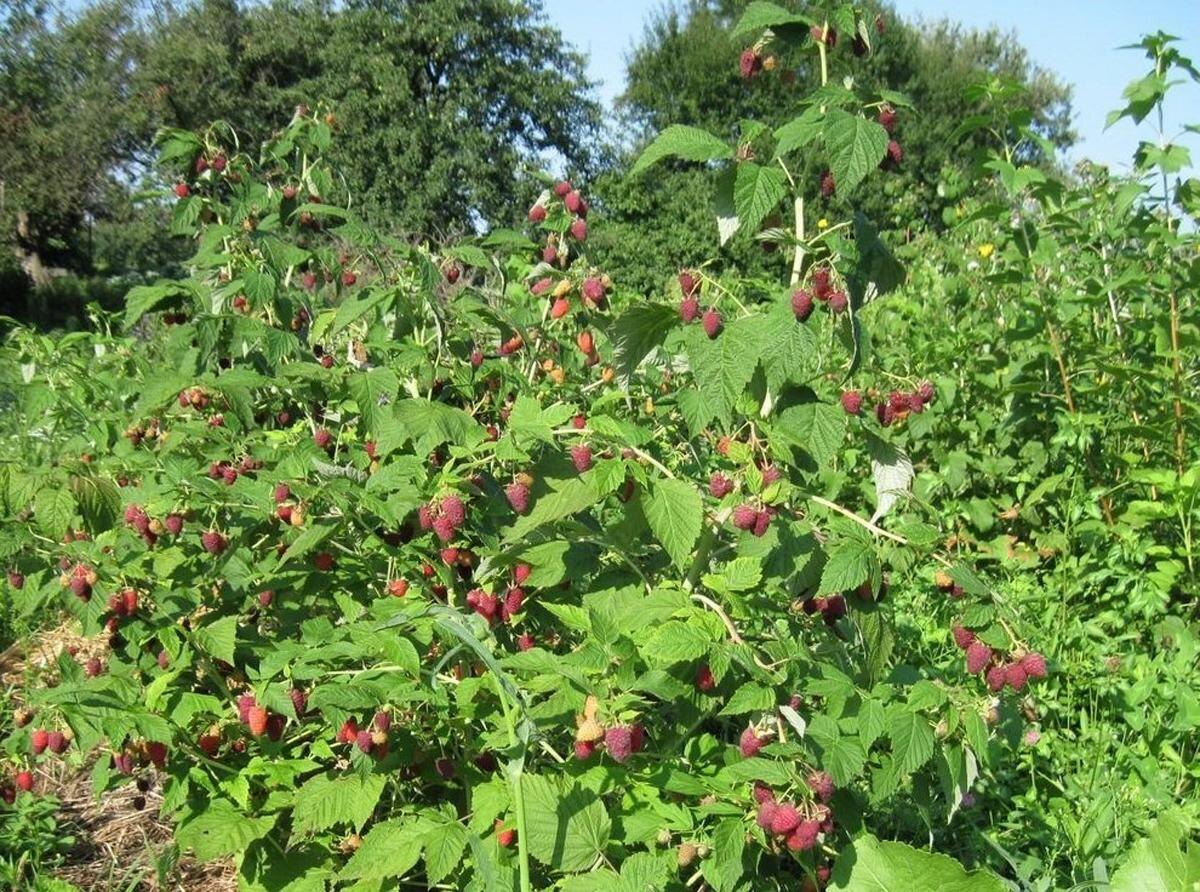 Малина обыкновенная, лесная, или красная, входит в обширный род Малина, включающий более 200 видов. Листопадный корневищный полукустарников травянистыми однолетними вегетативными и одревесневшими двухлетним генеративных побегами, отмирающими после плодоношения. В высоту растение достигает 2,5 м. Листья тройчатые или перистосложные из 3-7 заострённых листочков с пильчатые краем, светло-зелёных с верхней стороны и пепельно-серых — с нижней. Бледно-розовые или белые мелкие цветки собраны в кисть или щиток. Плод — сочная сложная костянка, легко отделяемая при созревании от цветоложа, красного, розоватого, пурпурного, кремового цветов. Лишь у немногих сортов «ягоды» бывают жёлтыми, а у "Ранней Кемберлендской" — чёрные. Малина обыкновенная дала начало множеству современных культурных сортов, которые делятся на 2 группы. Летние плодоносят только один раз в июле-августе, и основные ремонтантные плодоносят в июне-июле и сентябре. Из летних хорошо известны "Малинг Эксплойт", "Малинг Джевел"