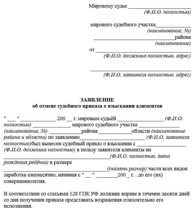 Примерный образец заявления об отмене алиментов можно скачать здесь.