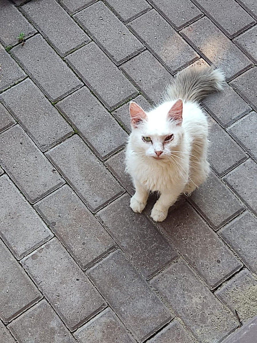 Отсюда. Возрастная кошка. Вчера её стерилизовали, она не была беременна — закрытая пиометра. Удалили несколько зубов, состояние было печальным, из-за чего на фото заметен неправильный прикус. Сейчас начали мыть уши, в одном из них, похоже, опухоль, сильно беспокоит кошку. Она постепенно адаптируется к новым условиям, и будем разбираться в ситуации.