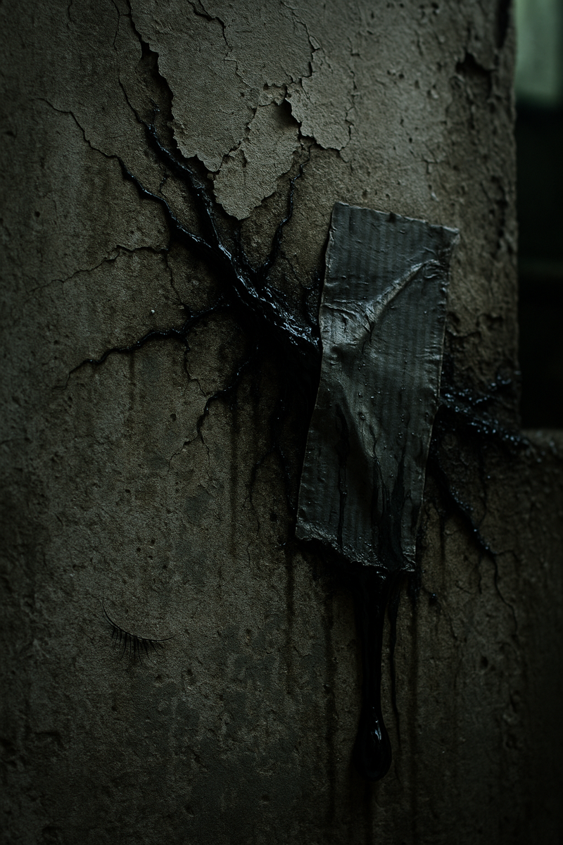 Трещина над кроватью. Сантехник сказал: "Беги". Вы не послушали. Теперь из щелей капает розовая плоть с запахом меди, на полу появляются волосы вашей умершей матери, а скотч на стенах кровоточит. Это не ремонт. Это — пробуждение Дома. Он помнит каждый ваш крик, слезу, боль. И хочет вернуть их. Вместе с вами. Читайте, пока шов над дверью не стал ртом... Они сказали: «Смирись. У всех так». «Так» — это трещины над кроватью. Мелкие, как паутина. После дождя они пульсировали. Тихо. Словно вены на виске у спящего. Сантехник, тыча паяльником в трубы, буркнул: «Беги. Пока швы не разошлись». Я рассмеялся. Пока не увидел, как из щели в потолке... капнуло мясом. Розовое, тёплое, с запахом медной монеты. На третью ночь швы зашевелились. Не треск — шорох. Будто под штукатуркой кто-то перебирает старые фотографии. Мои фотографии. Утром на полу — волосы. Седые. Длинные. Как у мамы перед смертью. Я заклеил трещины скотчем. К полуночи он почернел. Отслоился. Под ним — ре