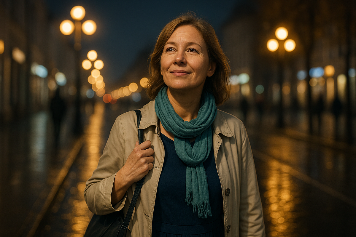 Дома поставила чайник, села у окна. За стеклом — вечерний город, фонари, начинающийся дождь.