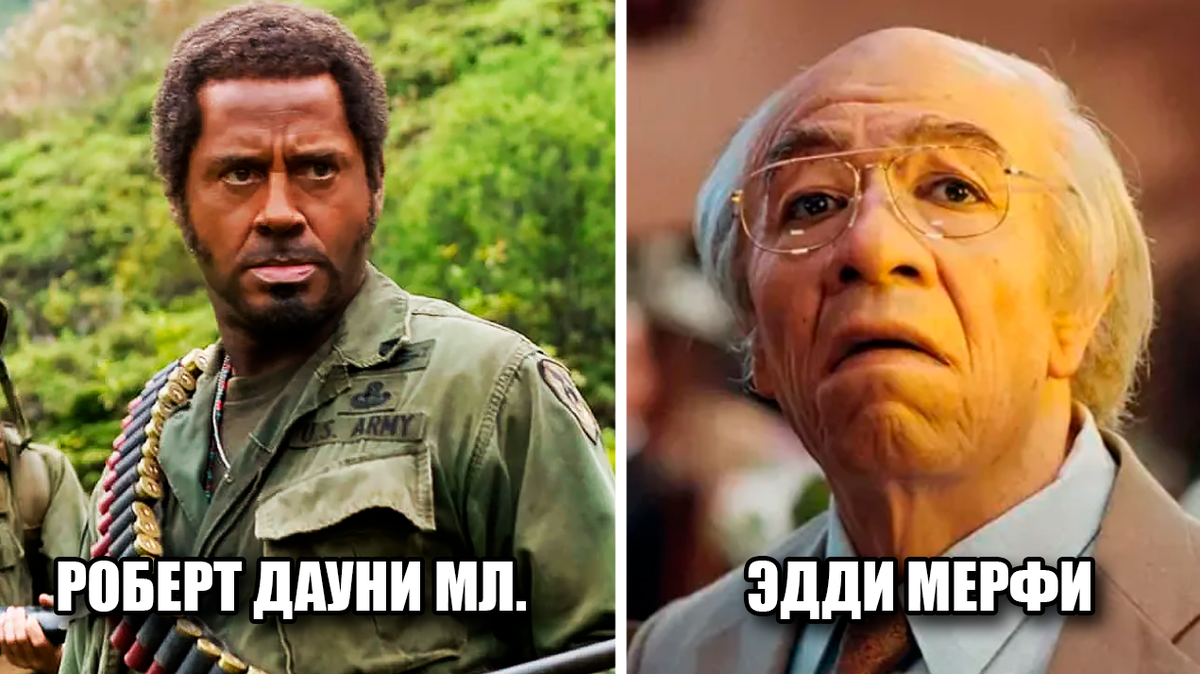 В фильме "Солдаты неудачи" будущий Железный человек Роберт Дауни младший сыграл актёра Кирка Лазаруса, который сыграл по сюжету чёрнокожего сержанта. Сложно? Сейчас объясним.