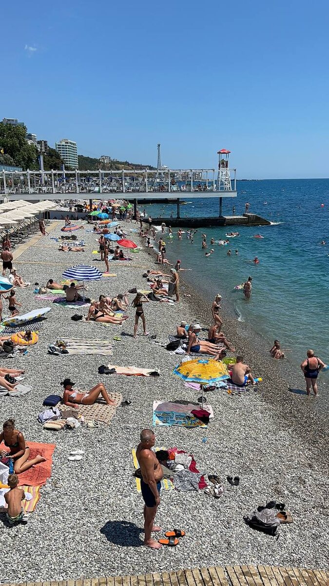 🌊🏔️🏝️ Море зовёт! Ялта сегодня! Массандровский пляж - полный аншлаг! 🏖️ Температура воды в море 🌊 +21-23. На солнце пекло, +32 в тени!