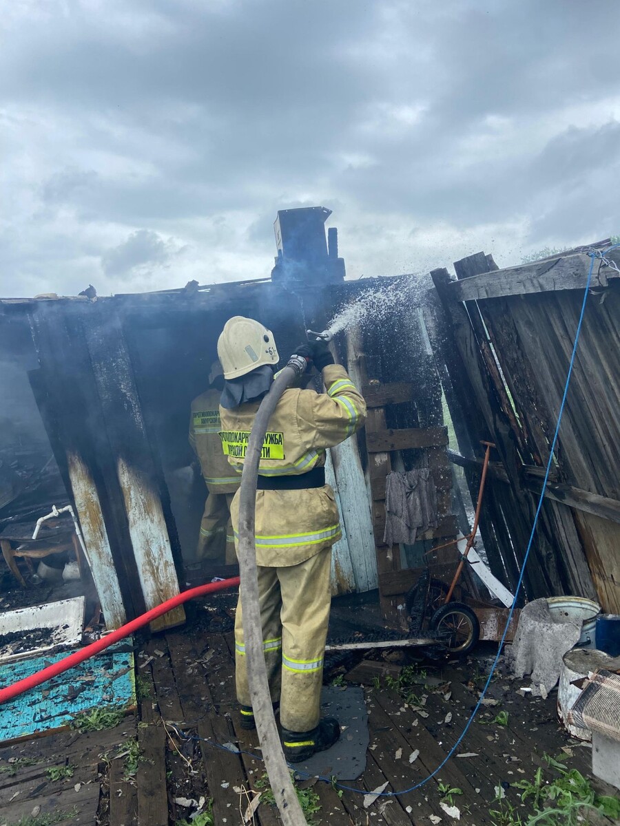 Огонь успел полностью уничтожить постройку. Один человек получил ожоги рук и ног, его госпитализировали. Причину и виновника пожара предстоит установить специалистам.