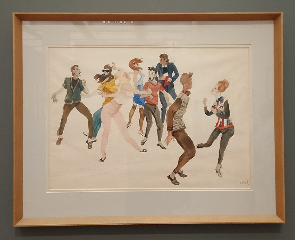4.Александр Дейнека "Гимн жизни" выставка в ГТК на Кадашевской набережной. Александр Александрович направлялся в заграничные творческие командировки. (Франция, США).На выставке представлено множество работ по их мотивам. В том числе интересные парижские пейзажи и такие вот жанровые акварели. Слегка карикатурные на мой взгляд. Кстати, в жанре карикатуры Дейнека тоже отметился и вполне серьезно. На выставке таких рисунков великое множество. Но карикатура - это, как правило, дань времени, моменту. И часто воспринимается неоднозначно. Грубовато. Особенно, если она связана с религией, образованием, вредными привычками. Чувствительными в социальном и психологическом отношении темами. Одним словом, я их фотографировать не стал...