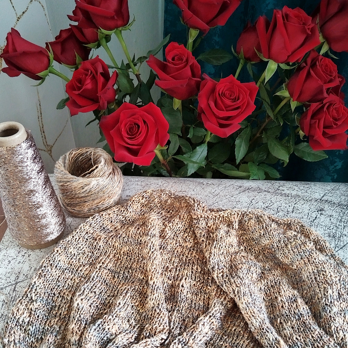 Ну а джемпер с пайетками сейчас активно вяжу. И даже после нескольких примерок, еще не уверена в результате, настолько непредсказуемая пряжа.
