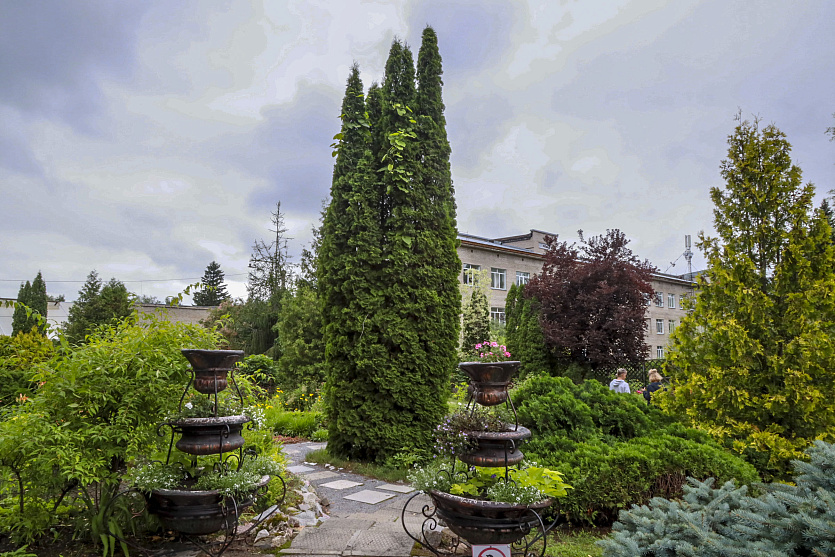 Затем мы проходим в «Сад декоративных форм», всего их здесь 215. Одних только туй 39 форм — колоновидных, шаровидных, пирамидальных, с разным типом и цветом хвои. 29 форм можжевельников, 15 — барбарисов.
