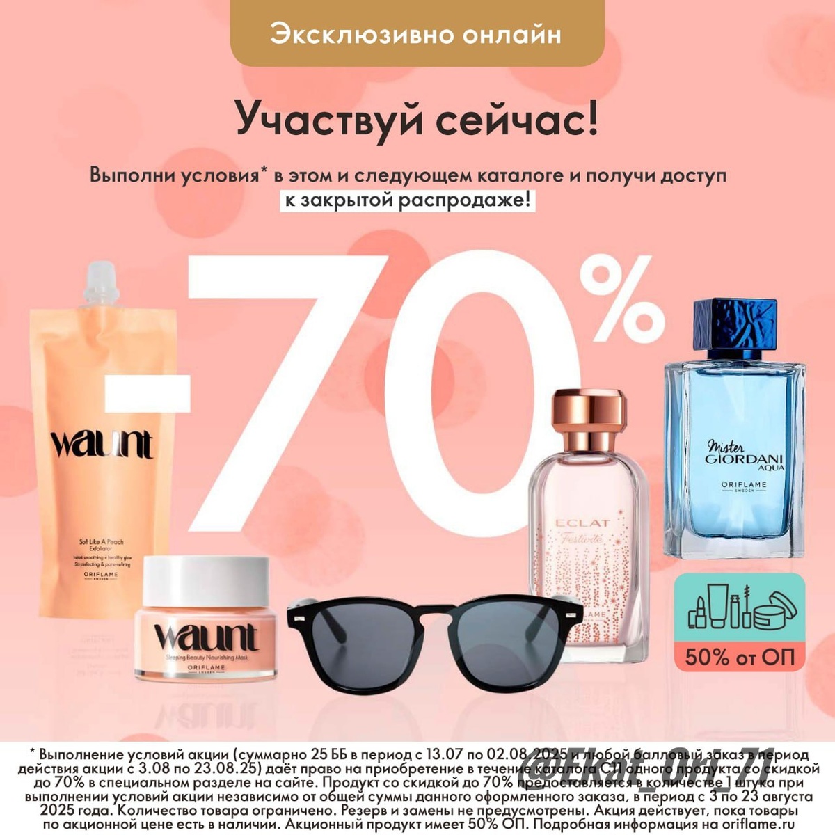 ✅Сделайте суммарный заказ на 25 Баллов Бонуса в каталоге №10 (с 14.07 по 02.08), затем оформите любой балловый заказ в каталоге №11 с 03.08 по 23.08) – и получите доступ к нашей жаркой распродаже и возможность выбрать из неё один продукт со скидкой до 70%.