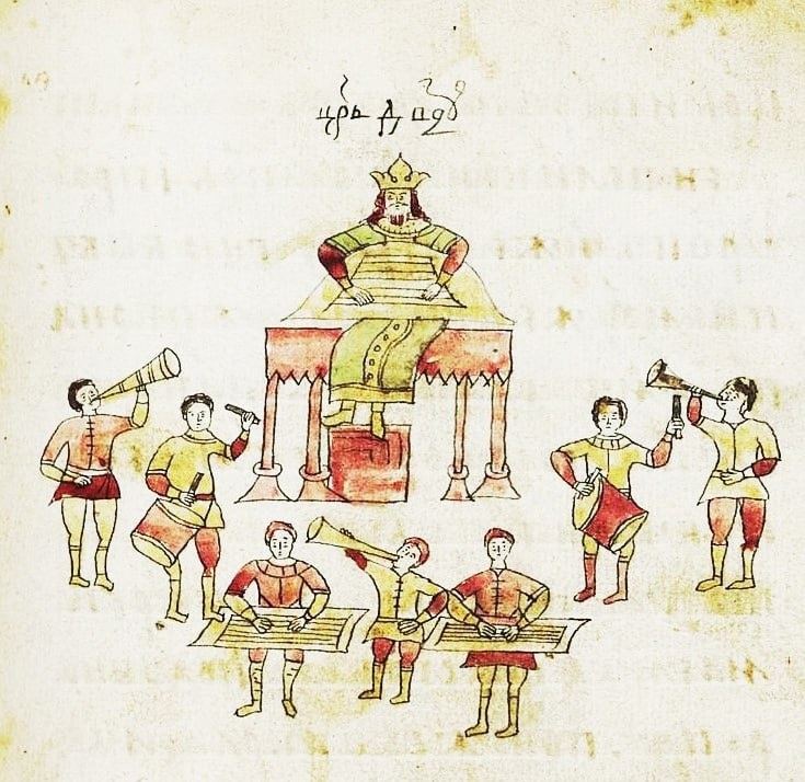 Царь Давид и музыканты. Христианская Топография, XVI в.
