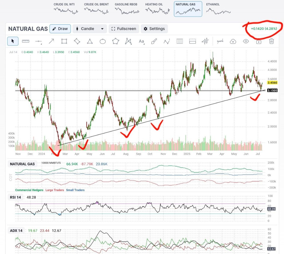 🔥Так, так, таааак..., а кто это у нас растёт с утра почти на 5%❗️☝️ нет не Биткоин, а Природный газ, Коллеги, который мы с вами набирали в