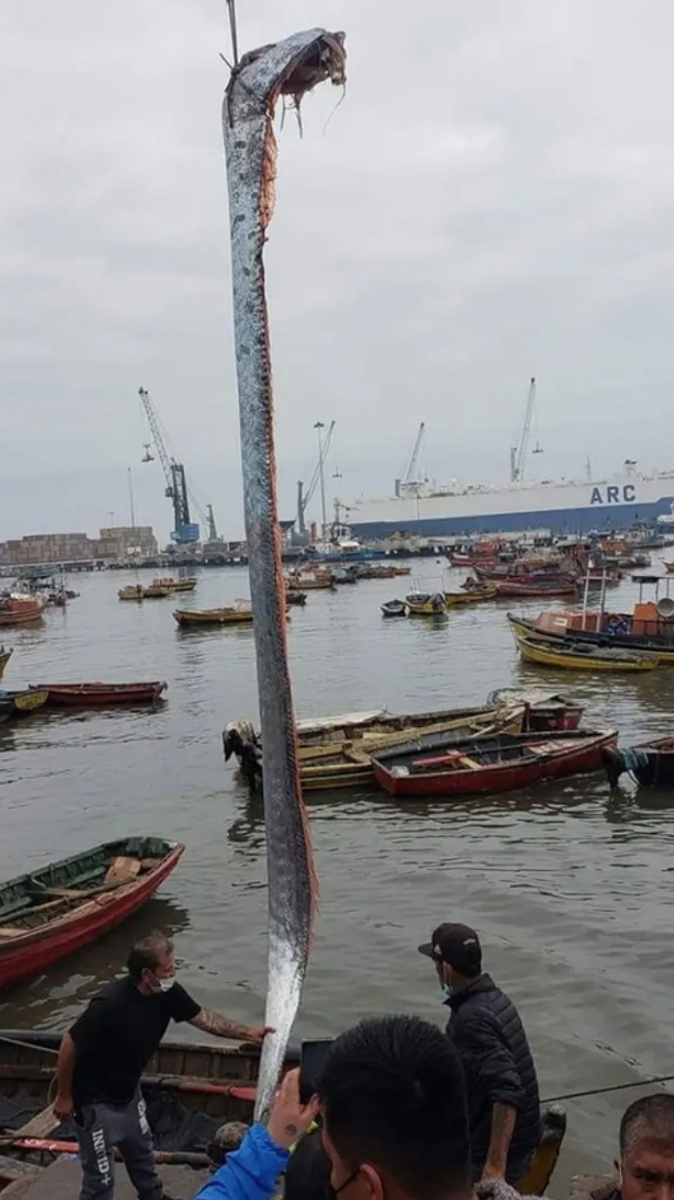 В водах Чили произошло необычное событие, которое заставило местных жителей вспомнить старинные легенды и поверья. Рыбаки выловили из океана настоящее морское чудовище — гигантского Сельдяного короля, чья длина достигала пяти метров. Это загадочное создание обитает на огромных глубинах, поэтому его появление у поверхности — крайне редкое явление. Сельдяной король, известный также как ремень-рыба, считается одним из самых необычных обитателей океана. Его вытянутое, лентовидное тело больше напоминает морское чудо, чем обычную рыбу. Появление этого глубоководного существа на поверхности моря издавна окружено мистическими легендами. В морской культуре многих народов считается, что встреча с Сельдяным королем — дурное предзнаменование. Существует поверье, что рыбак, которому посчастливилось (или, наоборот, не посчастливилось) выловить это создание, обречен на несчастья. В фольклоре разных народов Сельдяной король часто упоминается как предвестник природных катастроф. Его появление у повер