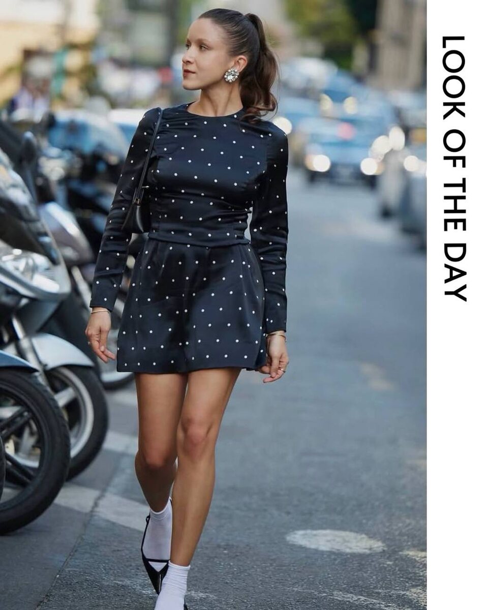 Образ недели 🖤 Платье миди в классический горошек идеально придаёт силуэту графичность. Белые носки в паре с остроносыми туфлями — дерзкий и модный реверанс в сторону стиля 60-х. Завершает образ гладкий высокий хвост и выразительные винтажные клипсы. Вдохновляемся луком Анастасии Полетаевой, и внедряем простые, но стильные приёмы в свой гардероб. Ссылки на товары: - Платье в горох - Туфли из кожи с ремешком - Сумка из кожи Товары доступны на сайте mcbuy.ru и в бутиках в Москве и Санкт-Петербурге 🤍