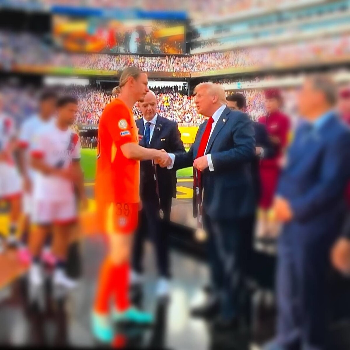 Президент США Дональд Трамп вручил игрокам французского «Пари Сен-Жермен», в том числе российскому вратарю Матвею Сафонову, серебряные медали клубного чемпионата мира по футболу. Трамп принимал участие в церемонии награждения вместе с президентом ФИФА Джанни Инфантино. В финальном матче ПСЖ со счетом 0:3 проиграл английскому «Челси». Сафонов не провел на турнире ни одного матча. Трамп надел российскому вратарю медаль на шею, после чего пожал ему руку. Клубный чемпионат мира в 2025 году впервые прошел в новом формате. В турнире приняли участие 32 команды.