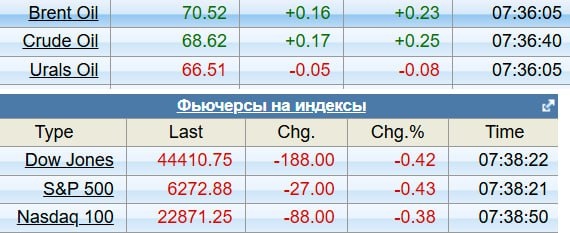 На утро понедельника. Нефть выше 70, американские фьючи на торговых войнах падают, но не то чтобы сильно. А наш рынок сегодня будет ждать, чего же такого кардинального там заявит Трамп по России.