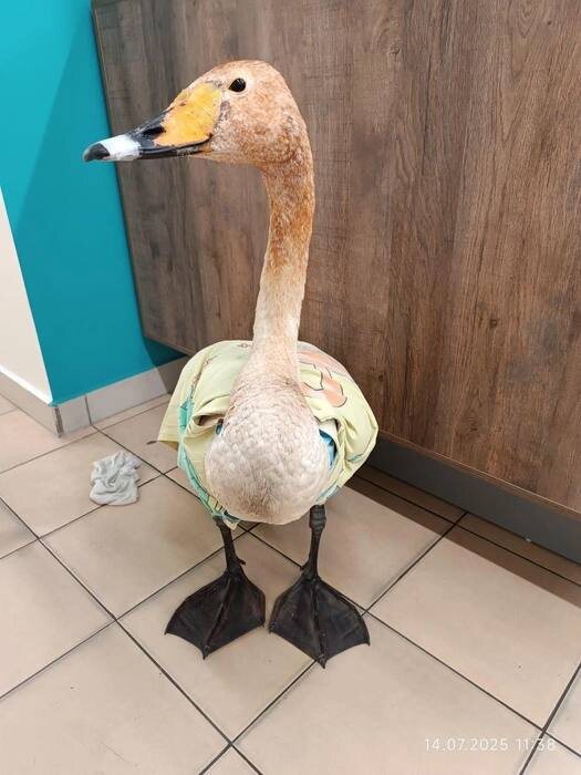 В ответ на пост Вырвал перья от стресса, но теперь отдыхает в баньке. Лебедь, которого 11 июля читинцы вытащили из реки в районе Пожарки, пережил ампутацию отмирающего крыла. Теперь он живет в бане у своей спасительницы. Екатерина, которая приютила пернатого, рассказала, что у него был старый перелом крыла. После операции восстановление займёт около недели, потом его заберет новая хозяйка: Дом для него мы уже нашли — он будет жить в Смоленке у женщины, которая создала отличные условия для птиц. Как только завершим лечение, я его туда отвезу. У неё настоящее хозяйство: павлины, индюки, курочки, голуби — кого там только нет. Павлинами она, насколько я поняла, даже профессионально занимается — разводит их. Помимо птиц у неё есть козочки, кот, в общем, всё как в мини-зоопарке. Кормят лебедя отменно, дают зелень — салат, лук, подорожник, листья одуванчика и специальный корм. Птица чувствует себя бодро: Он уже немного привык, может ущипнуть. Вчера, к сожалению, из-за стресса выдрал у се