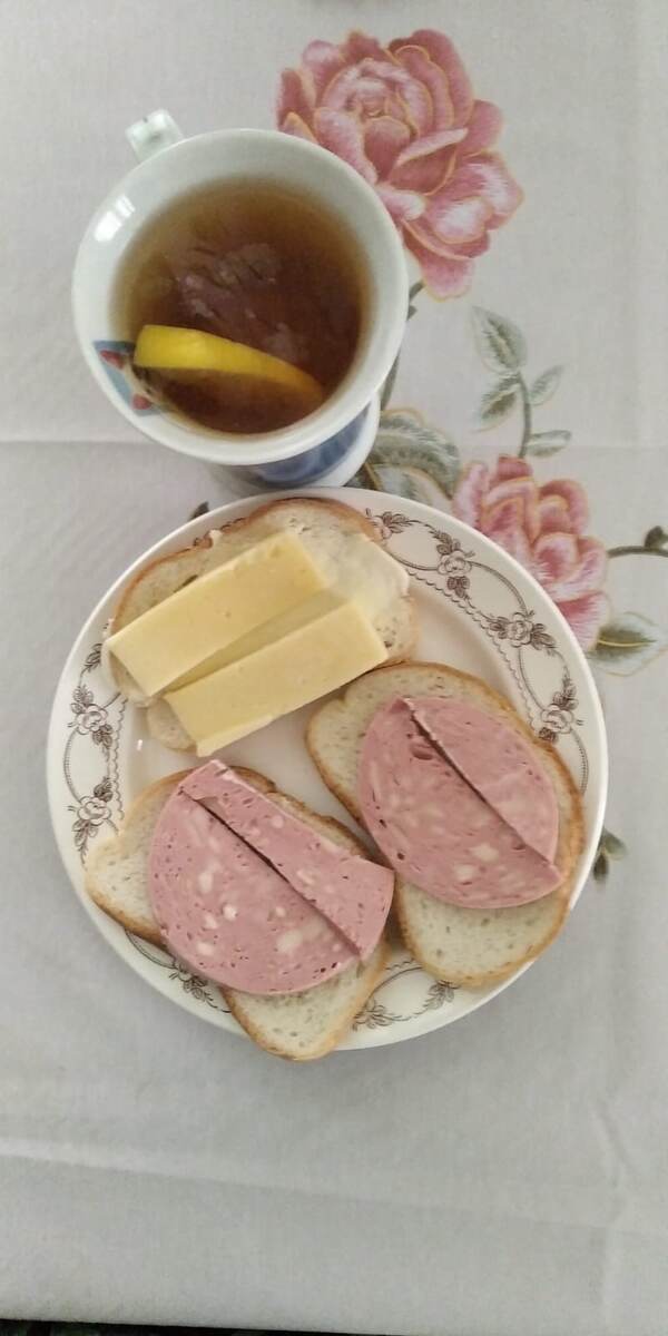 Приветики мои дорогие, как у вас дела? Я вот сегодня на подработку вышла, не очень то хотела, но пошла. Вчера попросили, я сначала хотела отказаться, но потом подумала, что мне к сентябрю хорошо бы ещё 5 тысяч накопить, чтобы съездить отдохнуть. В последнее время с вами своими завтраками делиться, потому что они у меня самые красивые получаются. Я не тороплюсь, и спокойно завтракаю, а вот ужин у меня чаще всего в спешке проходит. Я прихожу после работы очень голодная, и стараюсь сразу покушать. Пробовала брать творожок на рабочий перекус после 17 часов. Но в итоге все равно голодная прихожу, и получается ещё больше съедаю, чем запланированно было. На завтрак сегодня у меня были 3 маленьких бутерброда. Один с сыром и сливочным маслом, и 2 с колбасой сырой. Ну и чай чёрный с лимоном. Эта колбаса очень вкусная, и интересная. Стоит не очень дорого и получается как 2 в одном, и колбаса и сырок плавленый. Зевс Палыч тоже такую колбаску любит, всегда на две лапки встаёт, и подглядывает.