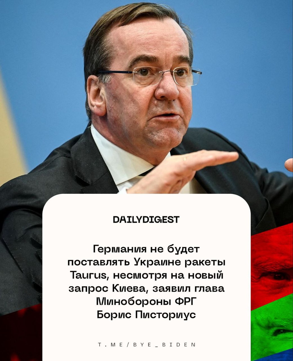 ☑️Главные новости на утро 14 июля: 🔹Германия не будет поставлять Украине ракеты Taurus, несмотря на новый запрос Киева, заявил глава Минобороны ФРГ Борис Писториус. 🔹Axios: Трамп объявит о новом плане поставок оружия Украине в понедельник. 🔹Байден признался, что пользовался устройством для подписи указов о помиловании. 🔹На границе Колумбии и Венесуэлы произошел подрыв нефтепровода компании Cenit. 🔹Reuters: ЕС может согласовать 18-й пакет санкций против России в понедельник. 🔹WP: в Афганистане усилился кризис продовольствия после сокращения помощи США. 🔹The Guardian: король Великобритании Карл III запланировал госвизит Трампа. 🔹Президент ФРГ Штайнмайер: в Германии стоит вернуть всеобщую воинскую повинность. 👍 БайБайден. Подписаться